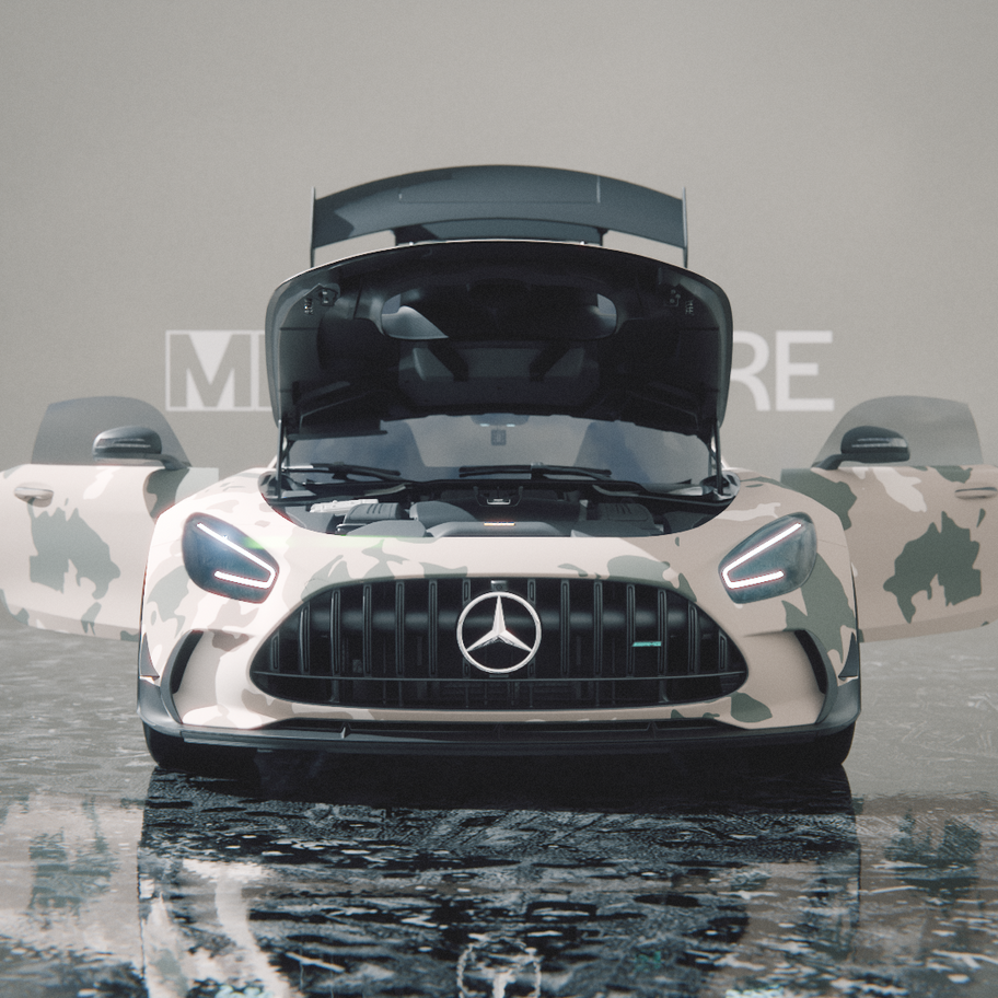 Photorealistic Mercedes AMG GT 2022 Camo Edition – 3D Model with Openable Featur